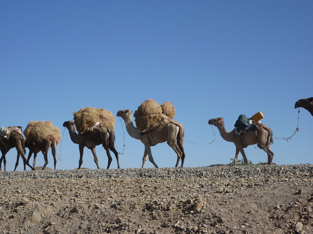 Ertale volcano, which has one of the most permanent lava lakes, is reached across the hot desert where you will come across the Afar people, many of whom live a nomadic life with their livestock and when they move camp put all their belongings including their shelters on the back of camels before moving on.